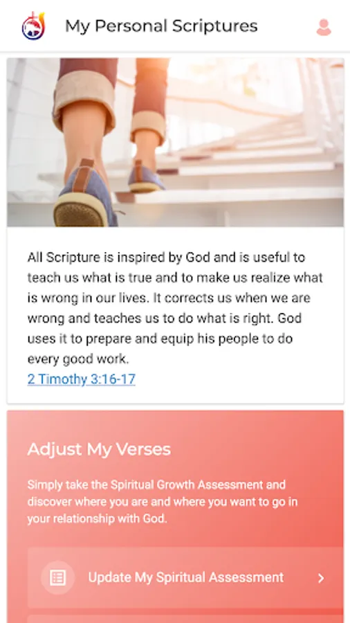 • Realiza una breve evaluación de tu crecimiento espiritual para activar mensajes personalizados a tus necesidades.