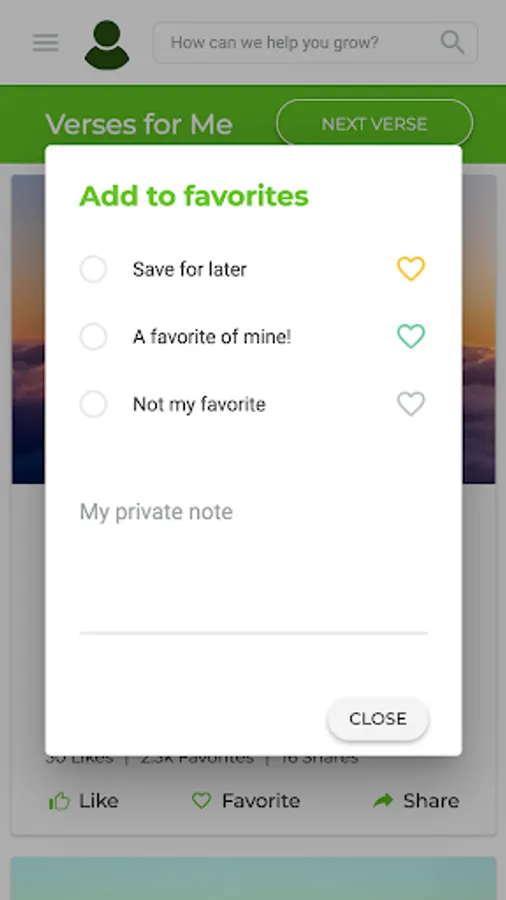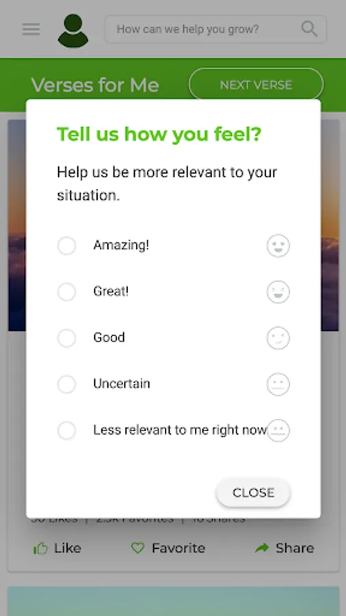 • Realiza una breve evaluación de tu crecimiento espiritual para activar mensajes personalizados a tus necesidades.