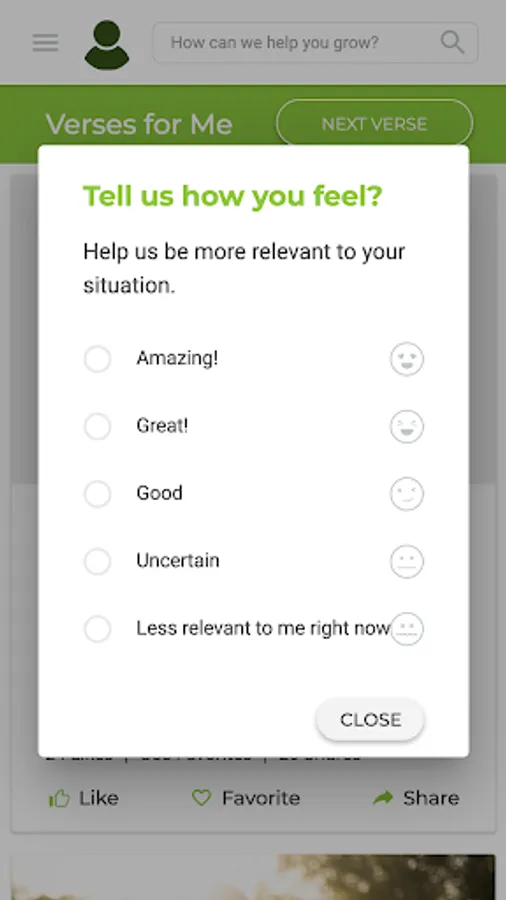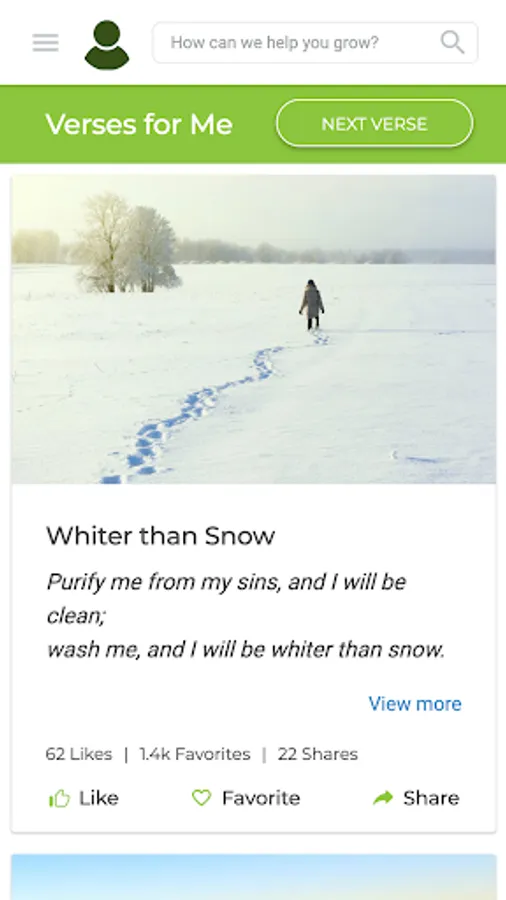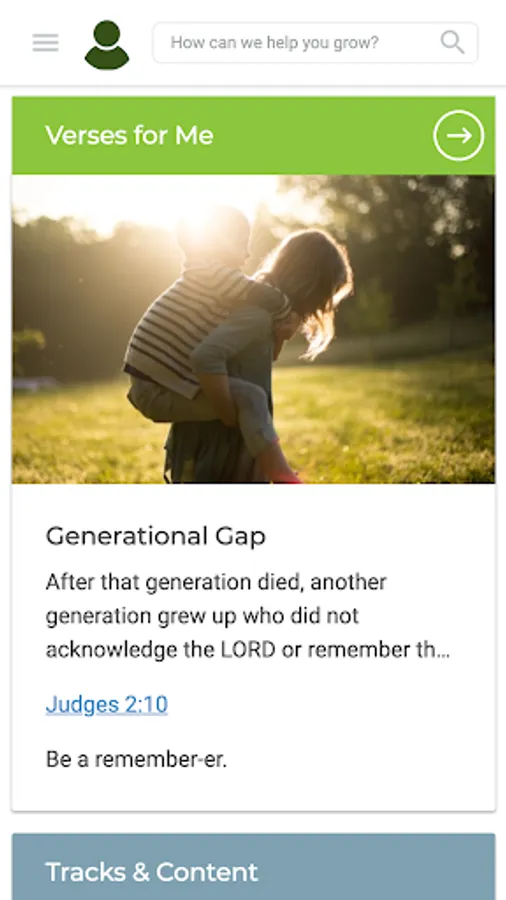 New redesigned interface with updated Home Page quickly gets you to all the main sections within the app: Verses for Me, Tracks & Content, Inbox, Favorites and Calendar.
