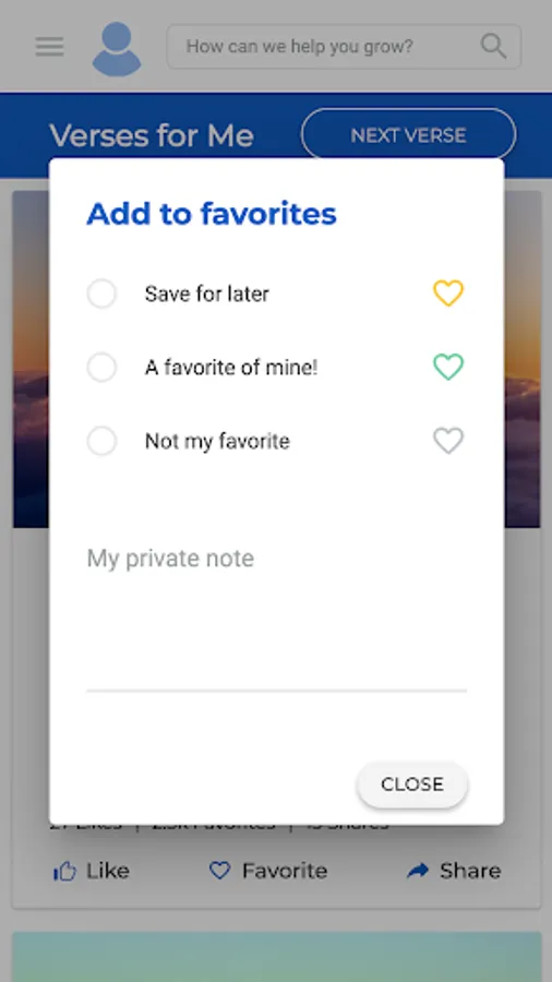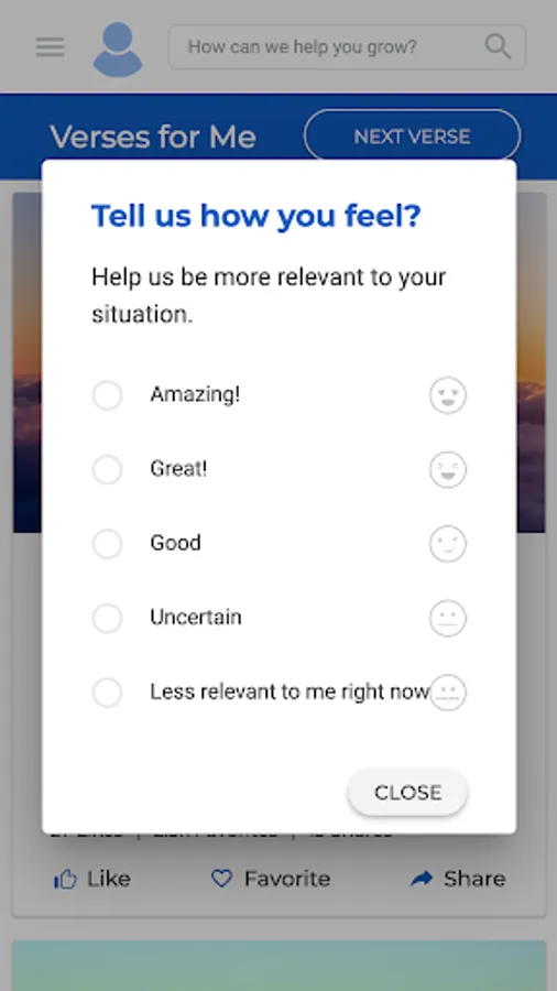 • Realiza una breve evaluación de tu crecimiento espiritual para activar mensajes personalizados a tus necesidades.