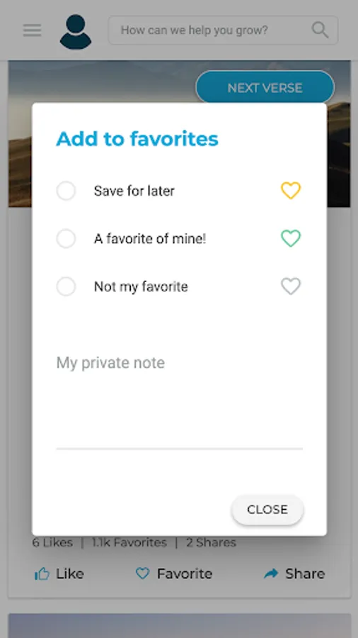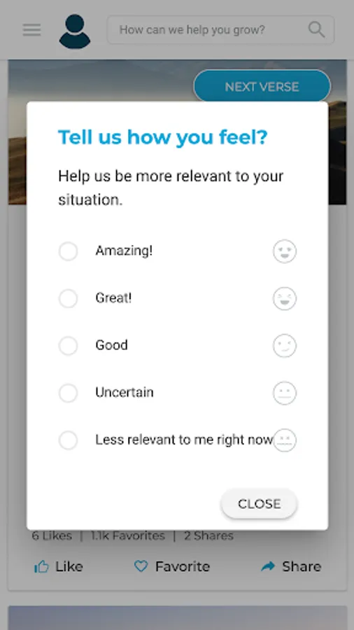 • Realiza una breve evaluación de tu crecimiento espiritual para activar mensajes personalizados a tus necesidades.