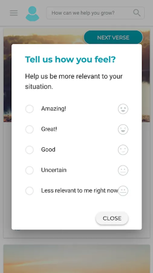 • Realiza una breve evaluación de tu crecimiento espiritual para activar mensajes personalizados a tus necesidades.