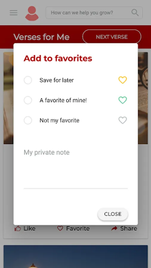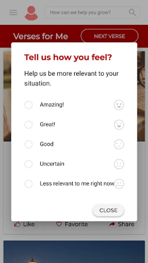 • Realiza una breve evaluación de tu crecimiento espiritual para activar mensajes personalizados a tus necesidades.