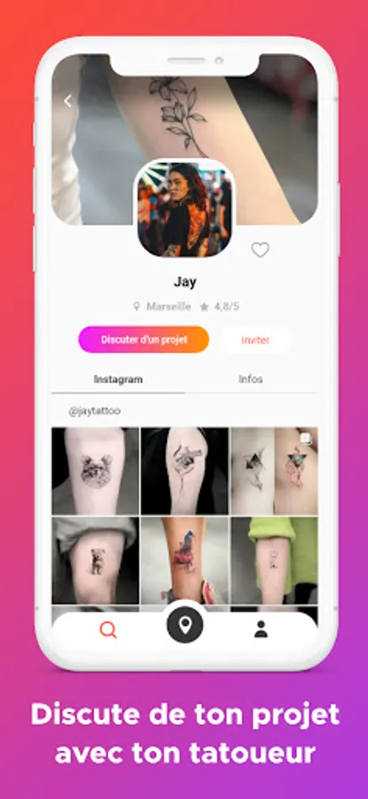 GoTattoo allows you to find a tattoo artist according to his specialties and according to his location. You can filter your search according to the tattoo style you want and choose from tattoo artists who match your project. You can also discover all the tattoo artists present in your city, and in the one where you plan to travel! And even offer a tattoo artist to come and tattoo in your city as a guest.