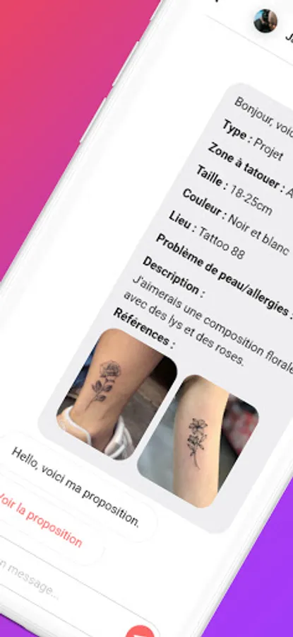 Once THE tattoo artist has been found, fill out a form to present your project to him and discuss with him to build it together! You can choose a date according to availability and pay the deposit online to block your appointment. You will receive all the important information to prepare it well, and reminders so as not to forget the date and address of the studio.