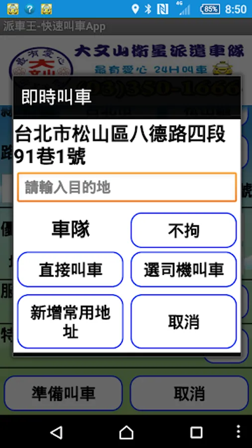 6) Enter the address by yourself to call a car