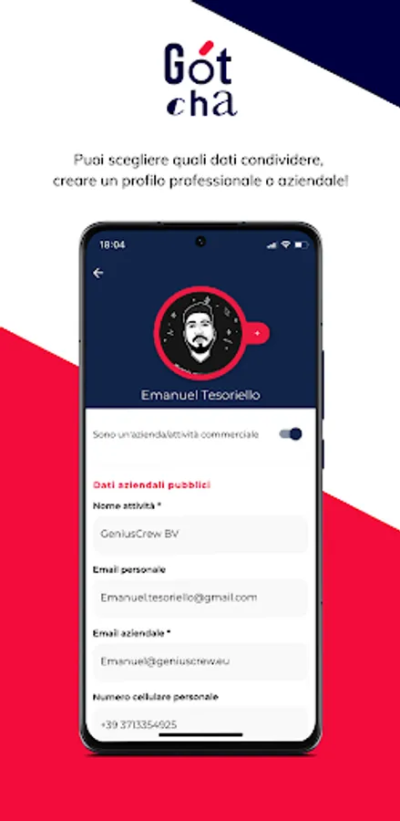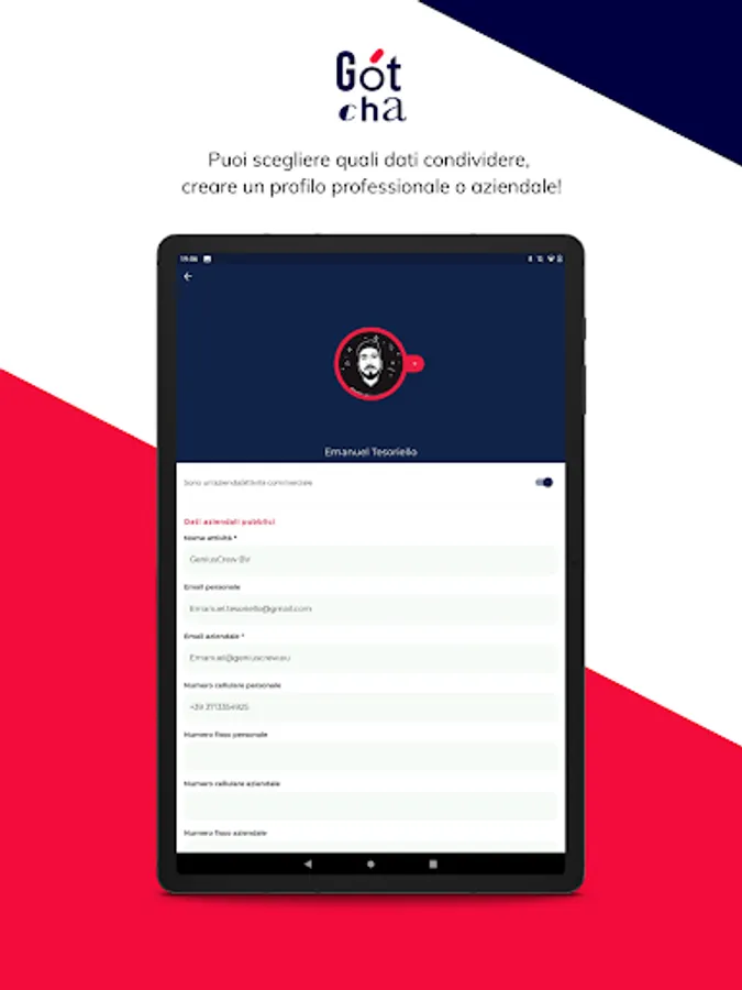 Inserisci tutti i tuoi dati sia personali sia di business. I dati verranno gestiti separatamente e potrai scegliere quali condividere