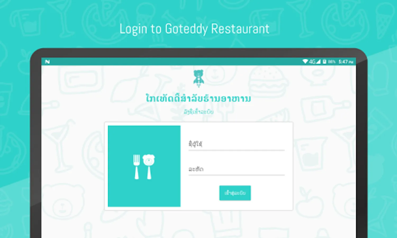 • Sign in through Goteddy Restaurant App