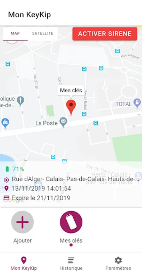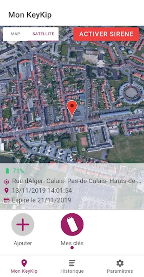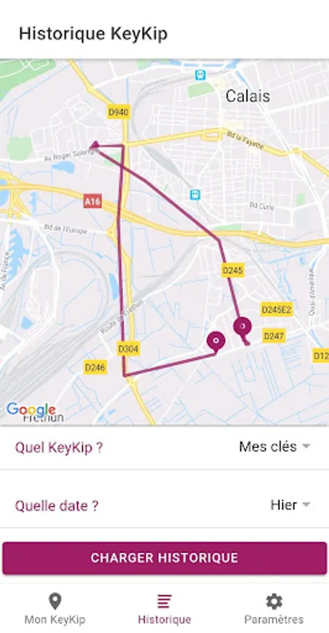 La fonctionnalité "Historique" vous permet de consulter à tout moment les déplacements journaliers de votre KeyKip.