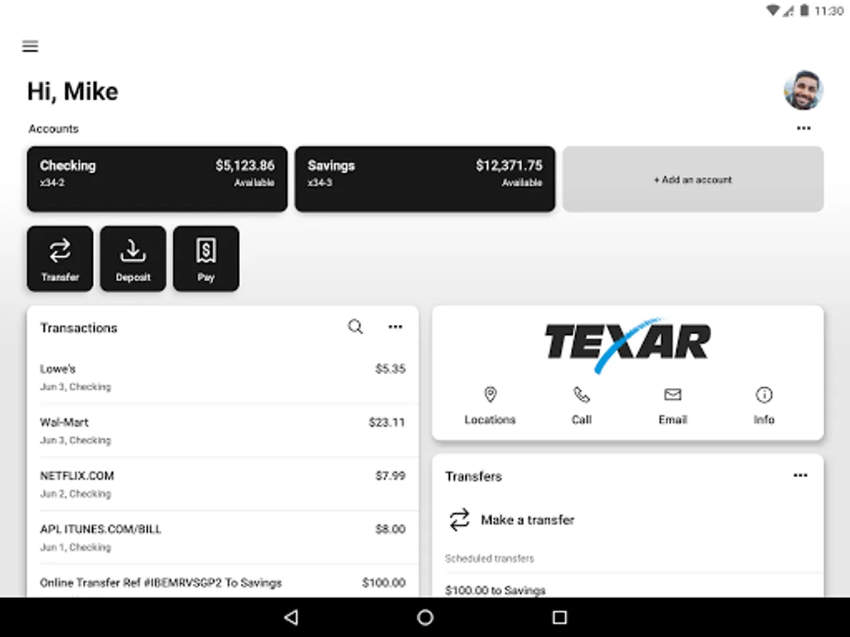 To use the TEXAR App, you must be enrolled as a TEXAR Internet Banking user. If you currently use our Internet Banking, simply download the app, launch it, and login with the same Internet Banking credentials. After you successfully login to the app, your accounts and transactions will begin updating.