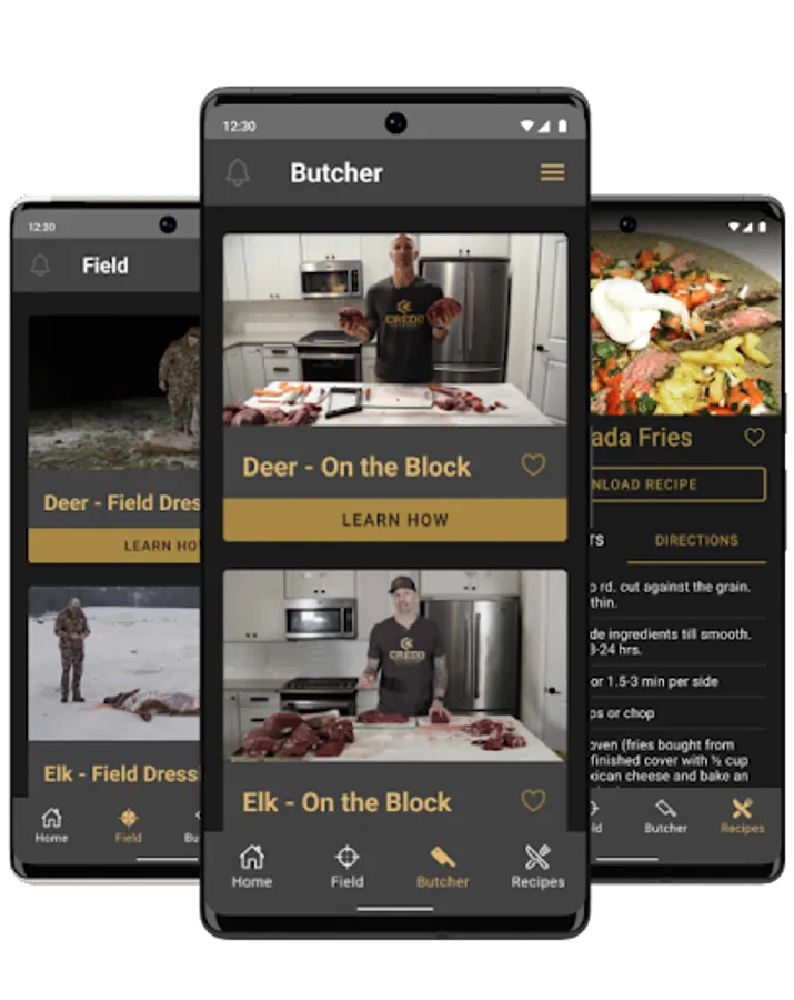The CutRite mobile app is all about helping hunters learn how to make the most of the meat from the animals they take in the field. To do so, the Got Game Technologies team has partnered with Mike Edgehouse of Credo Outdoors, an anatomy and physiology instructor and avid hunter, to walk hunters through the different methods of processing wild game in the field, identifying muscle groups and meat cuts on the butcher block, and preparing delicious meals for themselves and their loved ones.