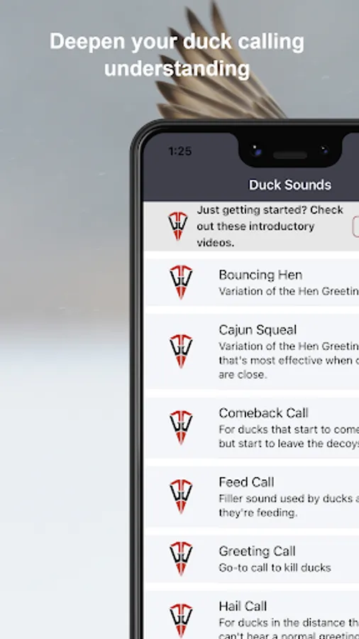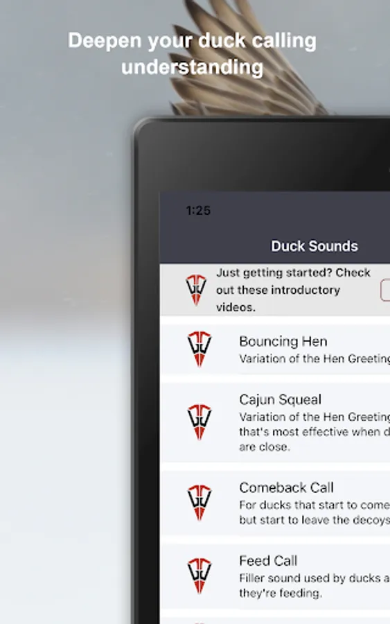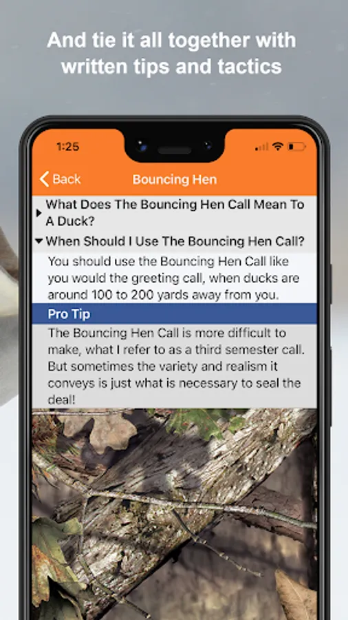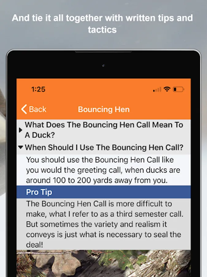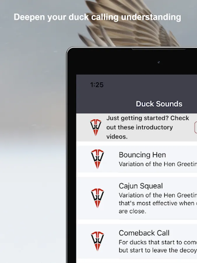 Learn how to call more ducks with three-time world champion duck caller, Barnie Calef, and Got Game Technologies’ tried and true instructional methodology. The Duck Tech mobile app breaks down seven of the most common duck sounds, teaching you how to make the sounds and helping you understand what they mean to a duck and when to use them. Increase your odds of success!