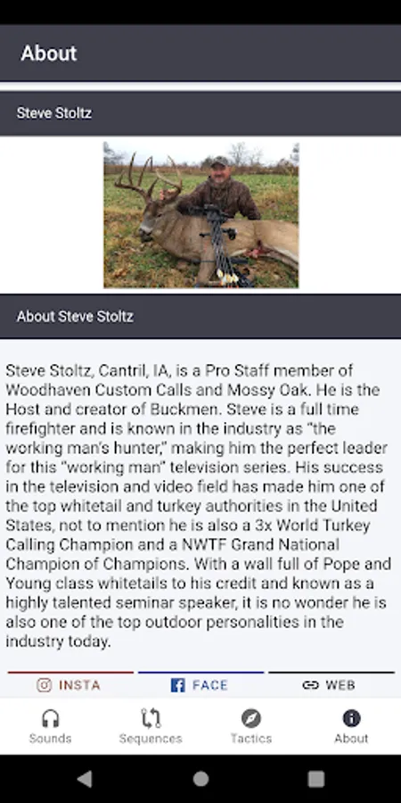 Whitetail Tech is the cutting of edge of whitetail deer calling and hunting technology. Under the guidance of the whitetail wizard himself, Steve Stoltz, you will be able to hone your whitetail hunting and, in particular, calling skills and better know how to to successfully harvest better and more whitetail deer. Whitetail Tech is loaded with videos that teach how to make the most common deer calls and rattling sequences. You can then compare how you sound to real deer audio as well as audio of Steve Stoltz calling and rattling for each of these sounds. Finally, Steve Stoltz has taken his tried and true deer hunting tips, and organized them by deer sound on the app.