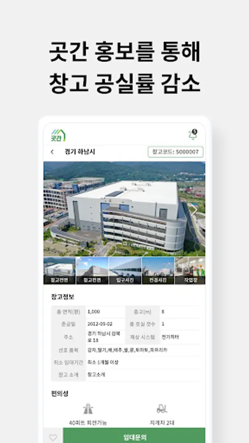 You can easily find a warehouse by searching for desired information such as location, area, floor height, and workshop information.
