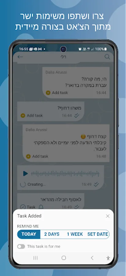 All in one place. Chatting, assigning, managing and editing your task. Add due-date, priority, reminder, category and get notification when a task status changes without wasting your time. "How did nobody think of this before?".