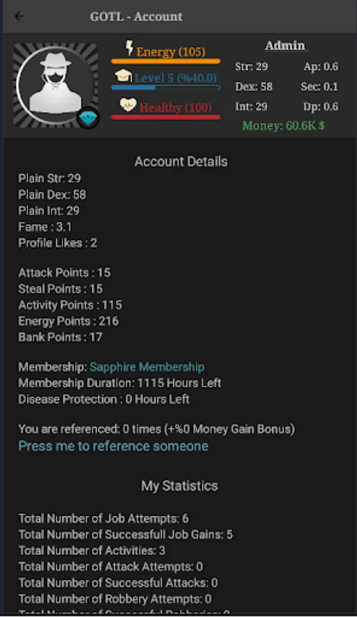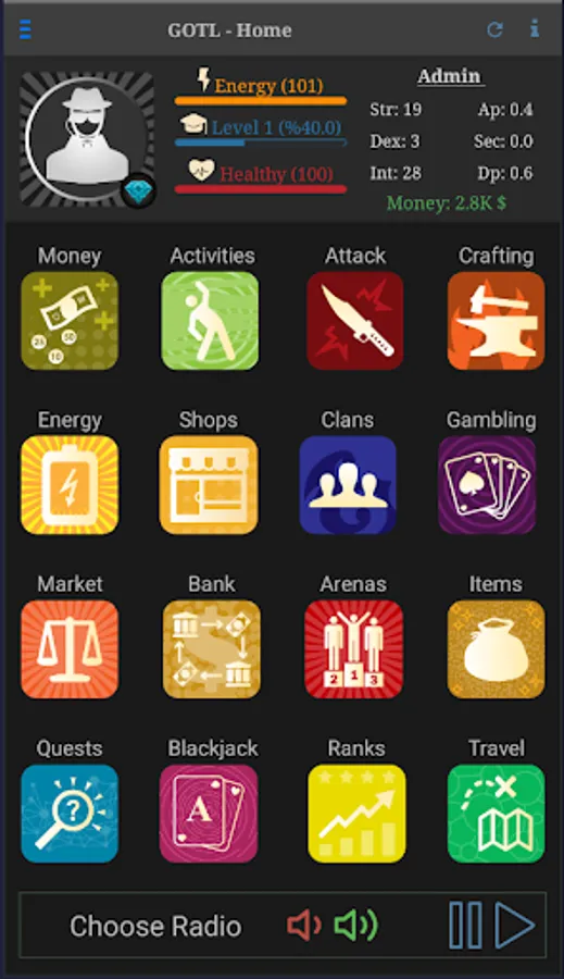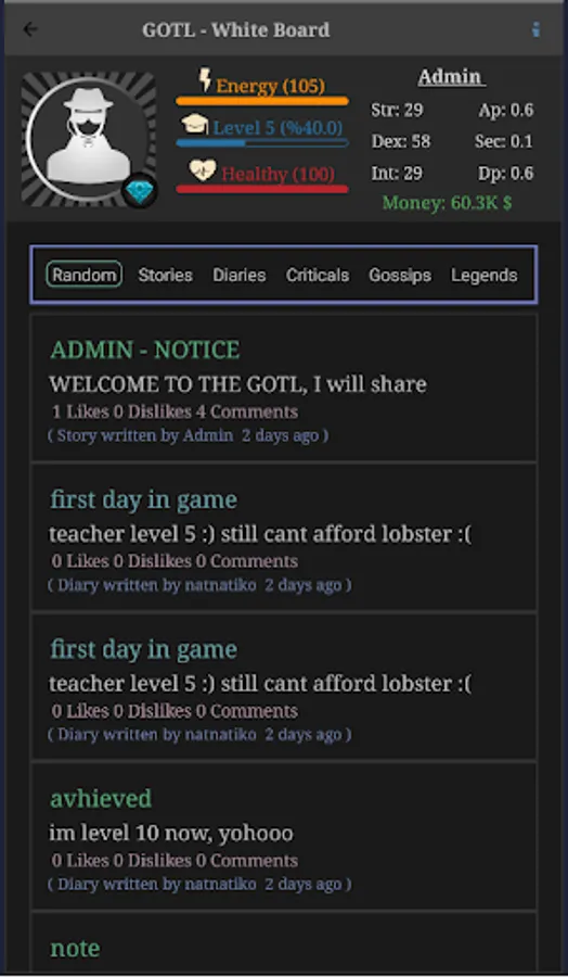 This game is made by indie developer and designer. We tried to give provide nice and smooth role play experience to the players. GOTL is a very dynamic game even if its a text based RPG. For example, the actions like attacking or stealing from other players happen instantly so, you can always interact with other plays quickly. There are few timers in game which you need to wait between 5-15 minutes, and all other stuff you can do instantly in this text based game.