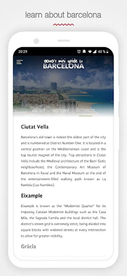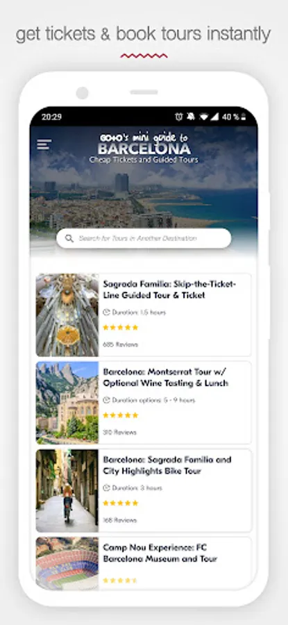 In addition to learning about the rich history of one of Spain's most vibrant cities, book guided tours of Barcelona's most popular attractions, such as Parc Guell, Sagrada Familia, Casa Batllo and more! Use this pocket guide to get cheap tickets and skip the lines at the tourist attractions. With our easy-to-use city guide & trip planner, your smartphone becomes your personal tour guide through the streets of Barcelona.