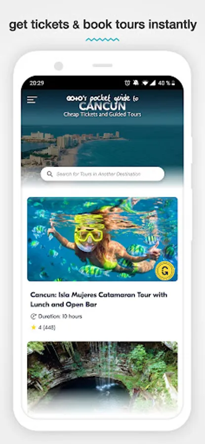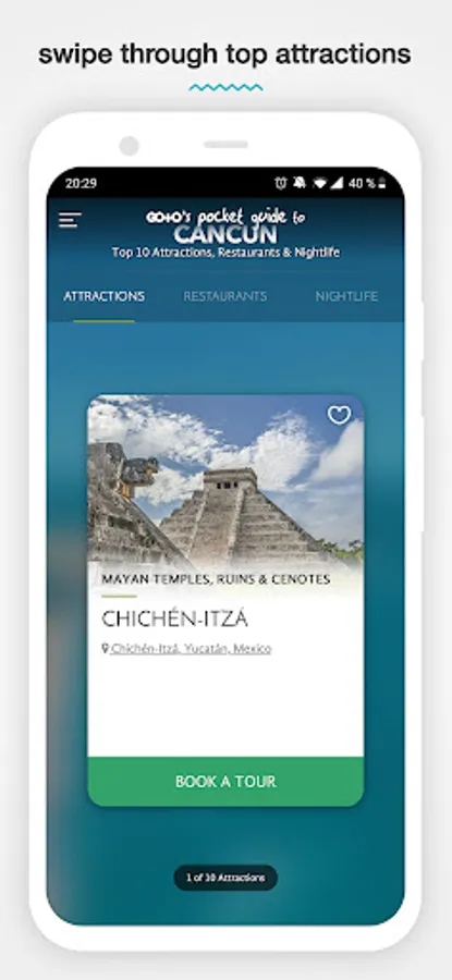 In addition to learning about the rich history of this Mayan wonder, book guided tours of Cancun's most popular attractions and nearby activities, such as Xcaret Park, Chichen Itza, Isla Mujeres and more! Use this free travel guide app to get cheap tickets and skip the lines at the tourist attractions. With our easy-to-use city guide & trip planner, your smartphone becomes your personal tour guide around Cancun.