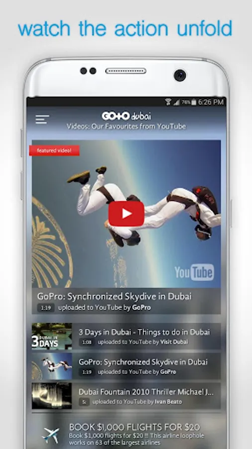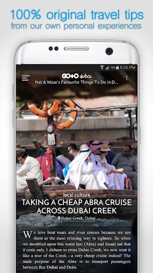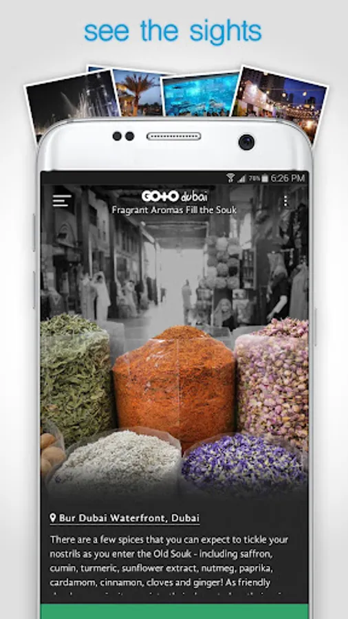 Explore the lively Emirate City of Dubai with the "Go To Dubai" travel guide app - our photo guide and top things to do are all available offline. Use this travel guide as your personal Dubai trip planner!