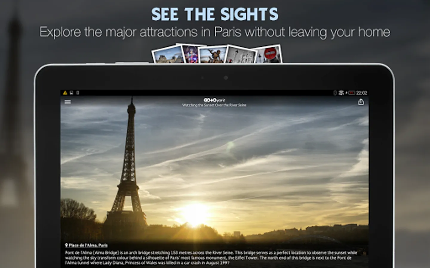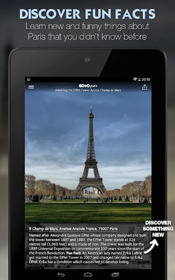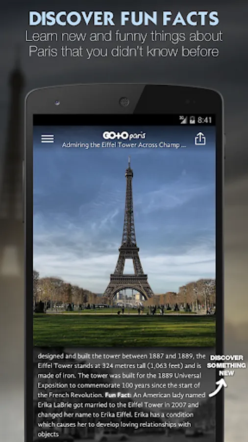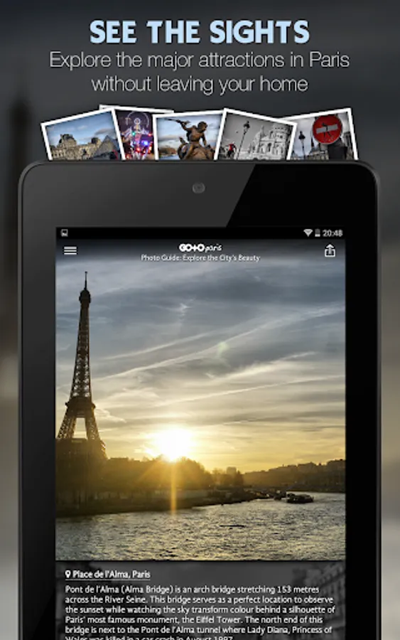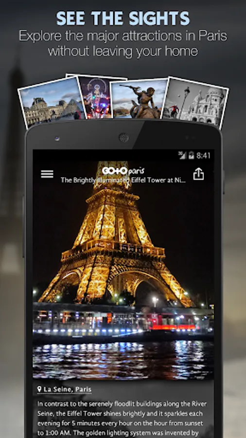 Explore France's romantic City of Paris with the "Go To Paris" travel guide app - our photo guide, top things to do, tickets and tours are all available offline. Use this travel guide as your personal Paris trip planner!