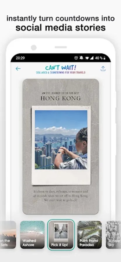2. Tap your countdown card to transform your vacation into a work of art with our Instagram story templates