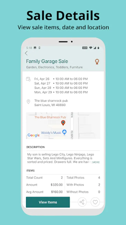 - List sale with items name, photos, price and other details which will be visible to thousands of buyers who loves to get a preview of what will be at the sale.