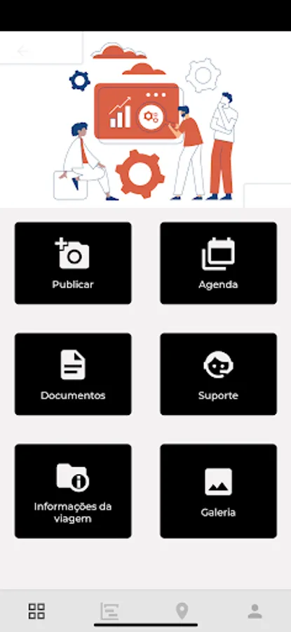 Application focused on customized travel management. It provides complete travel management for company campaigns, such as document management, travel information, posts in the app, support request, among others.