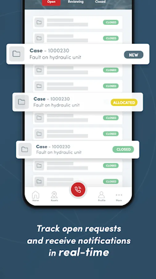 Full visibility from breakdown to resolution: From raising a Support Request, knowing your technician is on the way, to the issue being resolved – the app will track and send status notifications in real-time.