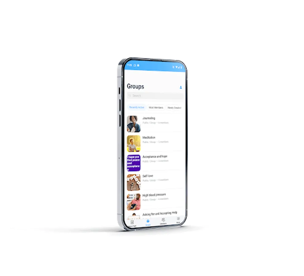 We leverage the therapeutic power of peer-to-peer groups using social media-styled tools inside secure private networks while also offering tools for well-being, including coaching and teletherapy. We deliver a patient-focused experience that is safe, evidenced-based, highly personalized, de-stigmatized, and designed to fit into a person’s life when and how they want it.