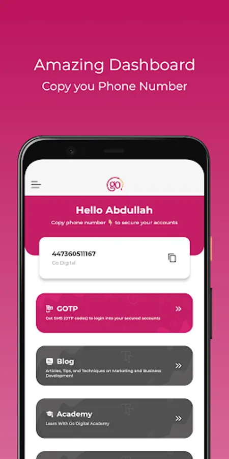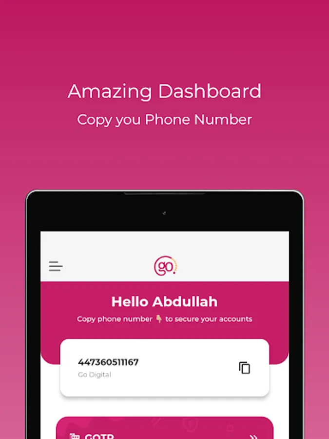 Protect your digital life with our GOTP, secured with 2-step verification and high-level authentication. With our high level of security and easy-to-use interface, we'll get you up and running in no time. This service is exclusively limited to Go Digital customers.