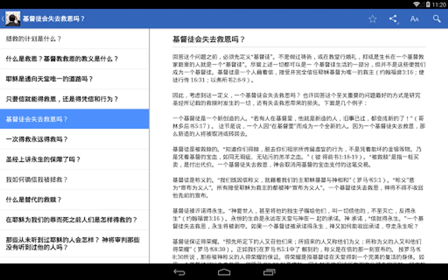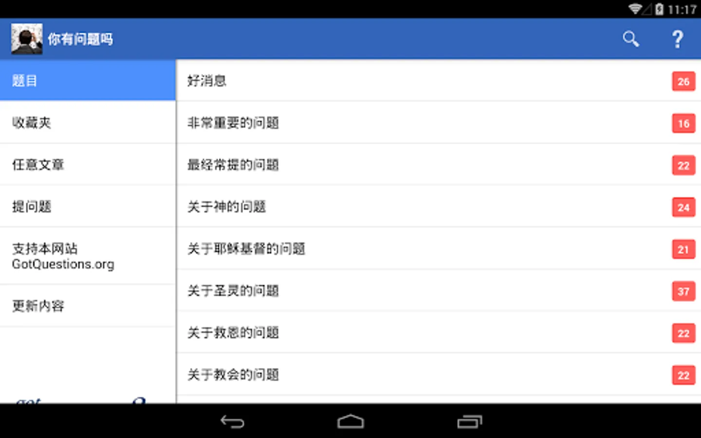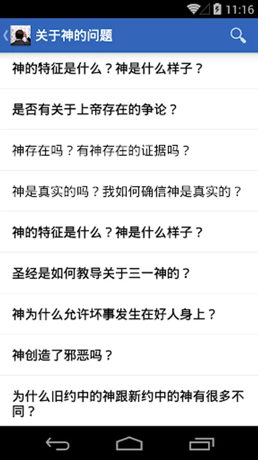 This application includes more than 1,000 frequently asked questions about the Bible organized by title, the built-in search function, easy to read favorites, you can easily download the latest updates and articles; if your program does not mention the issue, you can also select ask us a question.