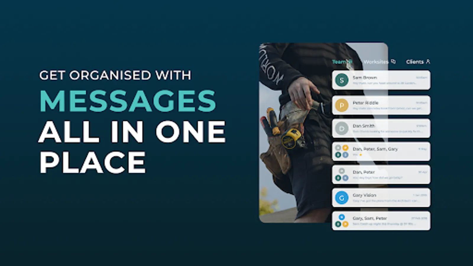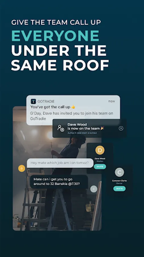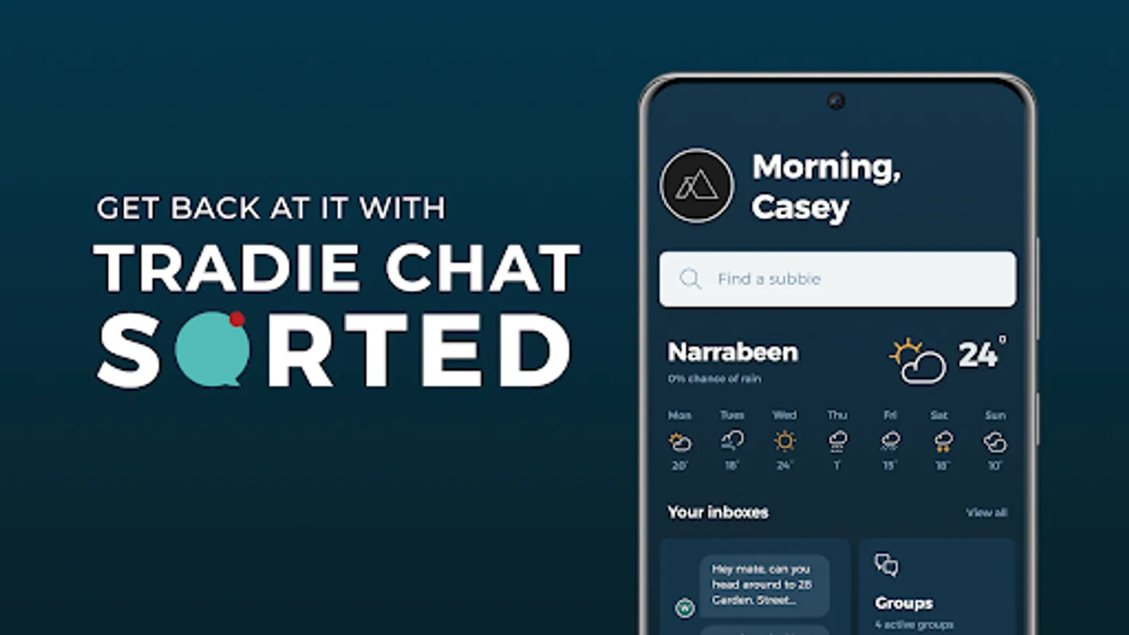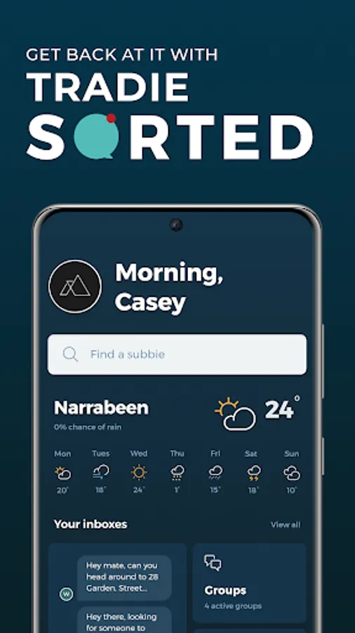 • Dedicated tradie messenger with self organising inbox
