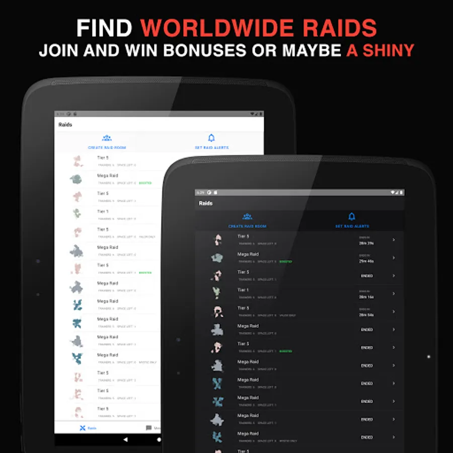 Explore the raids reported. Join the raid room and complete the raid with other trainers.