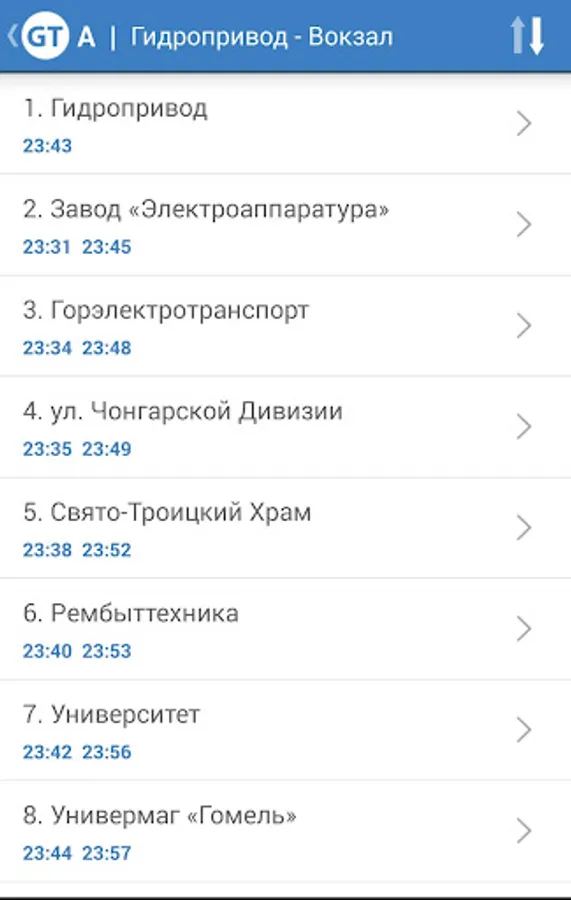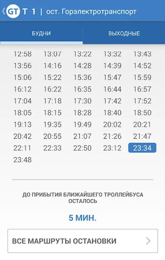 Gomel Transport application provides information about the schedule of buses and trolleybuses in Gomel