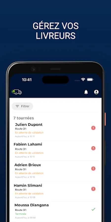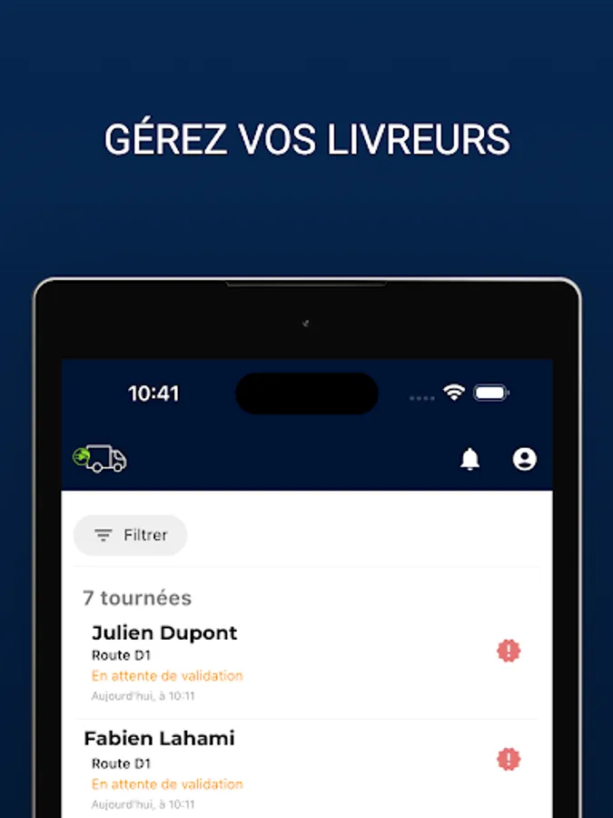 Intended for delivery companies, this application allows you to manage your delivery people and follow their routes. Simple, intuitive, it allows you to manage your daily activity and gives you access to all the information you need to facilitate the management and monitoring of your delivery rounds.