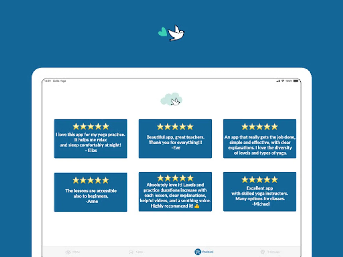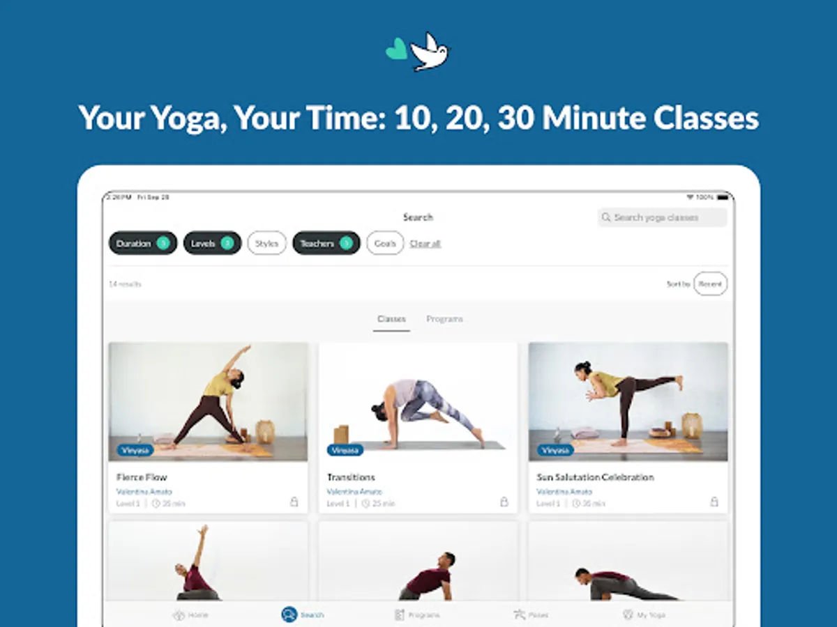 First yoga program and a selection of other classes in different yoga style are for free. The other classes are available by purchasing a subscription in the application.
