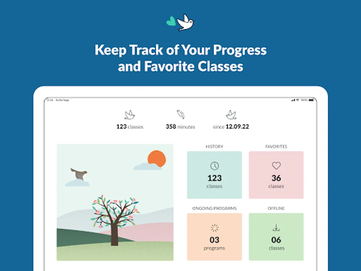 We have planted a seed for your yoga tree. Your tree will grow with every finished yoga practice. You can share your tree via Facebook, Twitter or email.