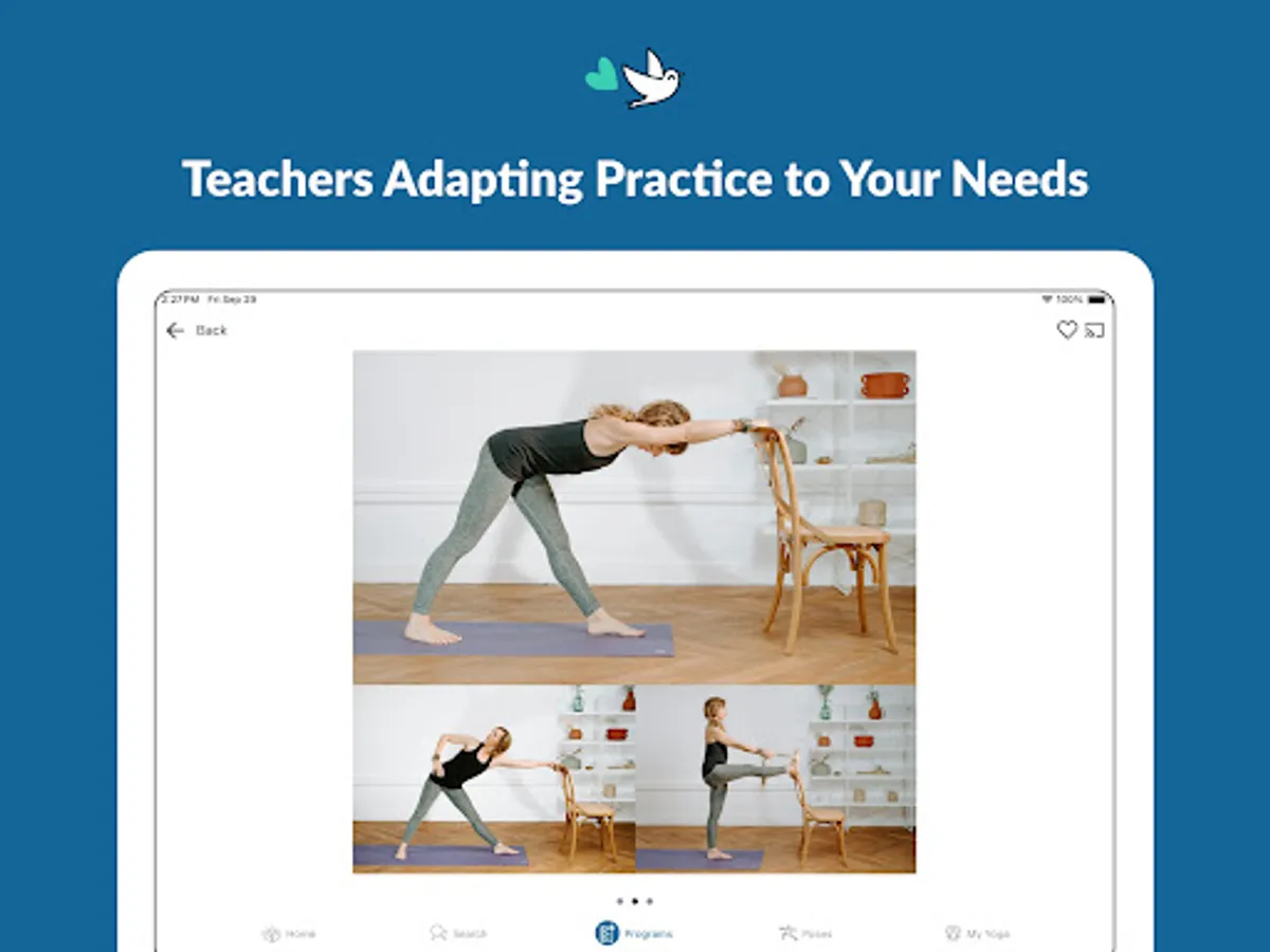 Gotta Yoga player displays the yoga classes and asanas as videos with voice and text that support your learning. You can pause the player, and move back or forward in the yoga class as you wish.