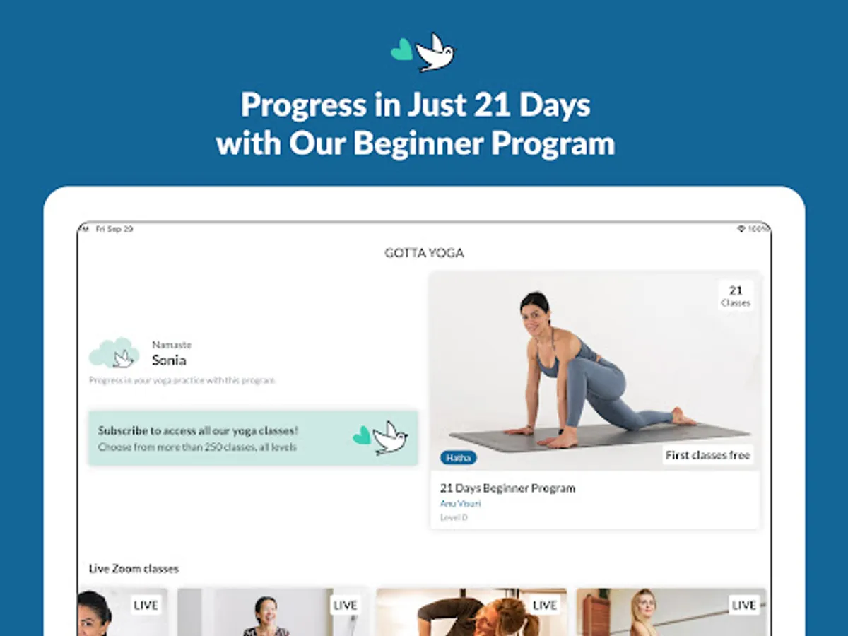 Gotta Yoga classes are perfect from beginners onwards. Start your personal yoga training now by downloading Gotta Yoga.