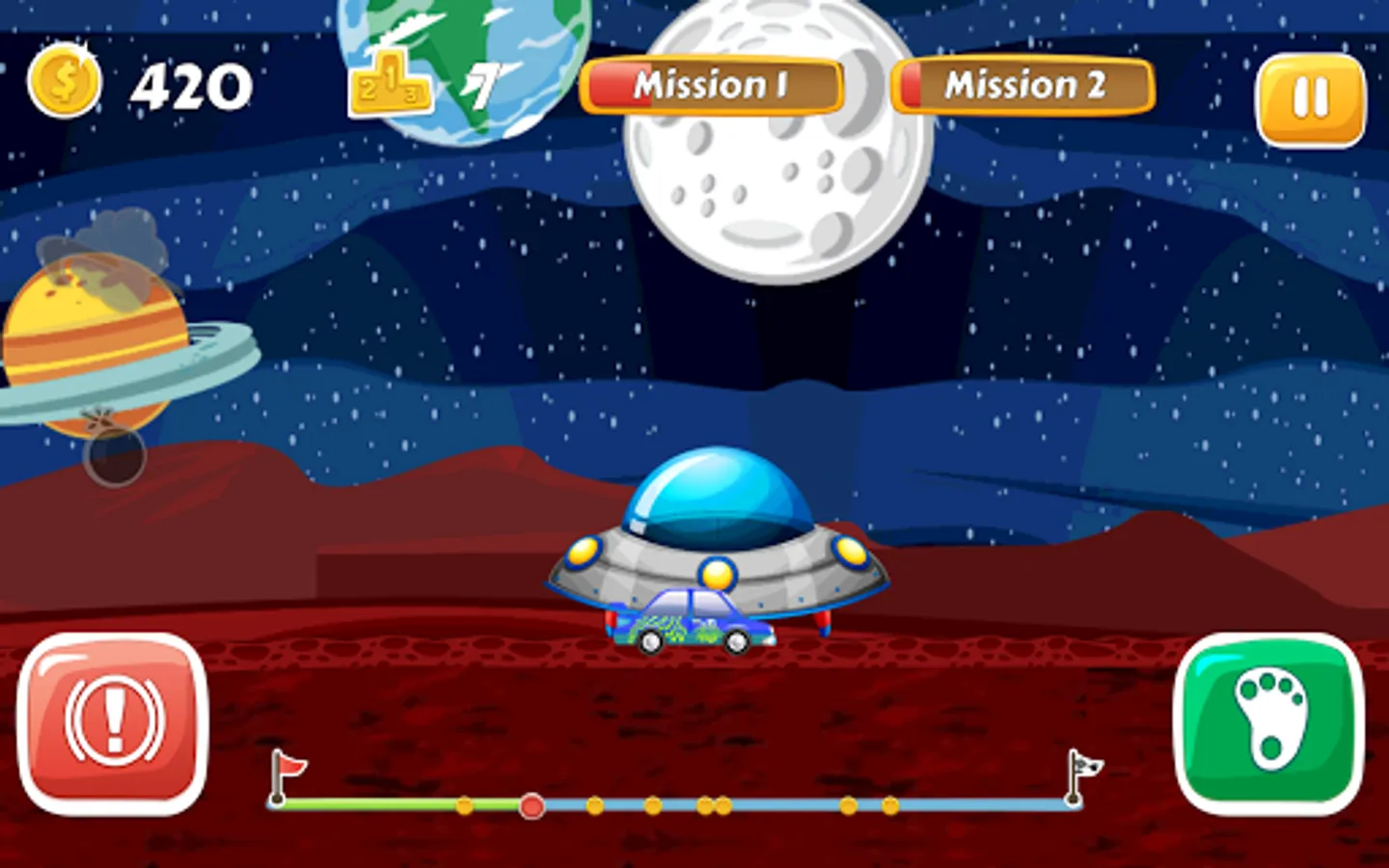 Fulfill in-game missions and unlock new levels, jostle for position as you journey through different worlds. Who knows where the track will take you next - keep the pedal to the floor and soon you could even be battling aliens with rockets on a desert planet!