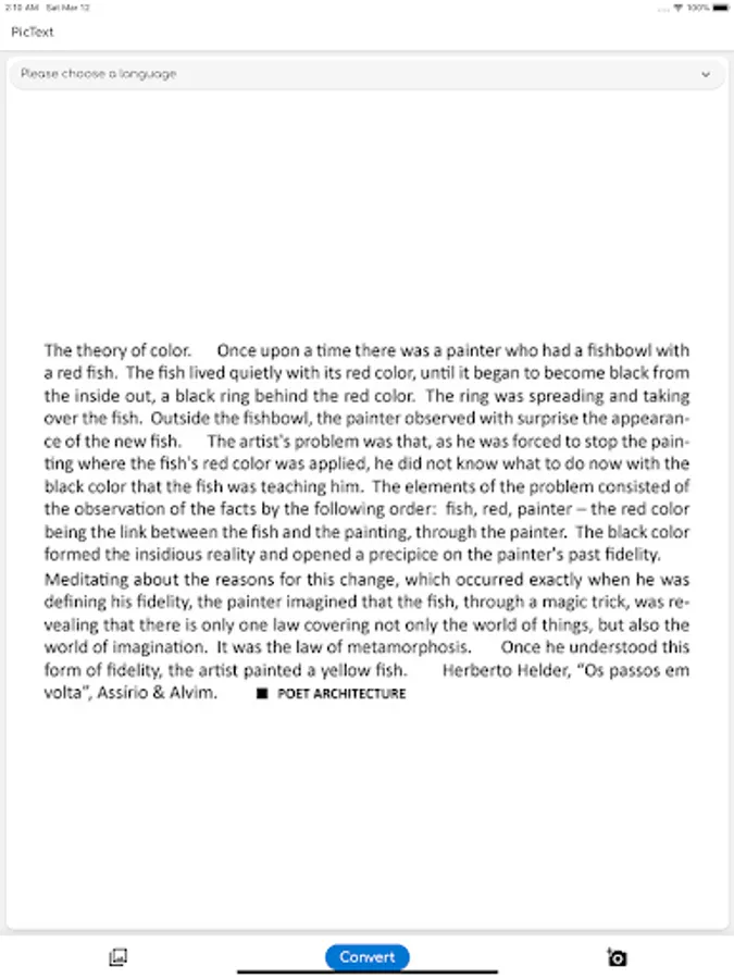 - select or take a picture that contains some text.