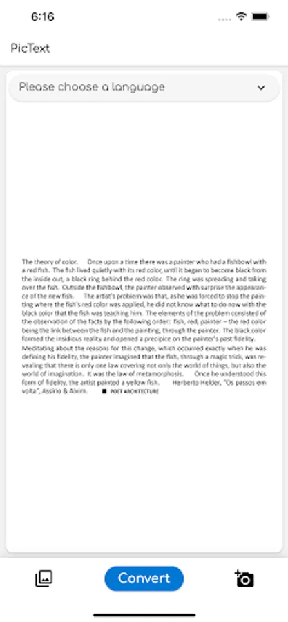 This "picture to text converter" application will help you to extract any type of text from your image, simple and fast.