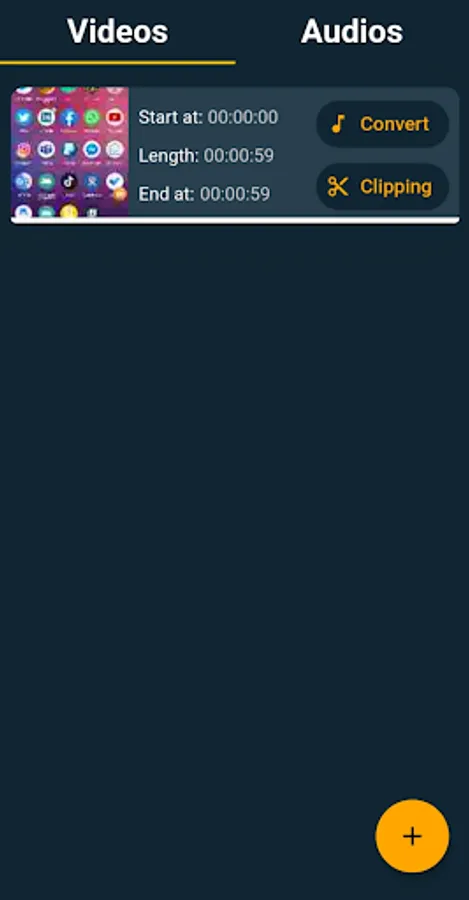 It contains two tabs, the first one is for videos and the second for audios, in videos tab you can click on add button to pick a video from your gallery, then the application will automatically generate a thumbnail for your selected video and gives you two options, the convert button when its clicked the whole video will be converted to audio file and saved automatically.
