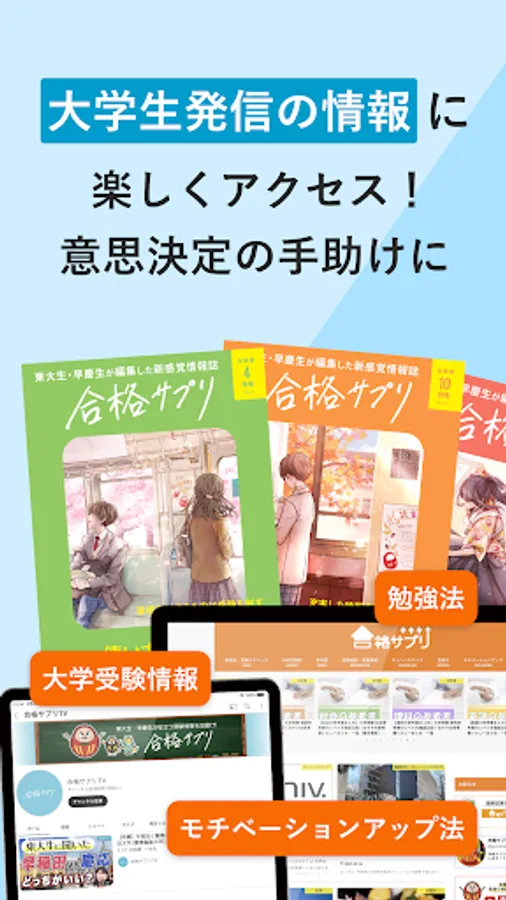 通学中、自習の休憩中などで手軽にチェックできるため、最小限の時間で多くの情報をゲットできる!