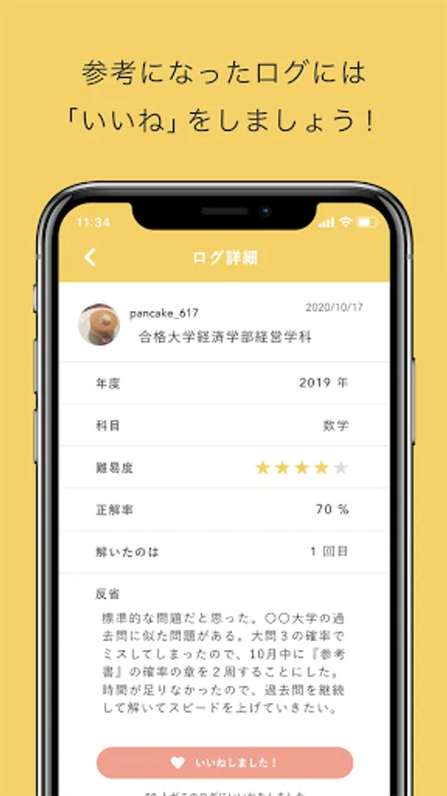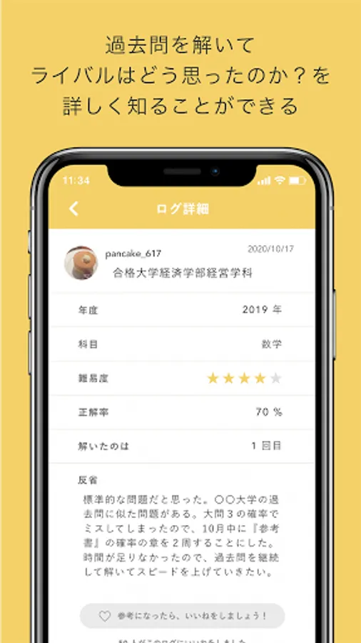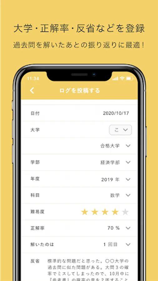 "Solving Log-App for solving, recording, posting, and sharing past questions" is an app for recording and sharing the impressions of past questions solved by students who practice past questions for university entrance exams.