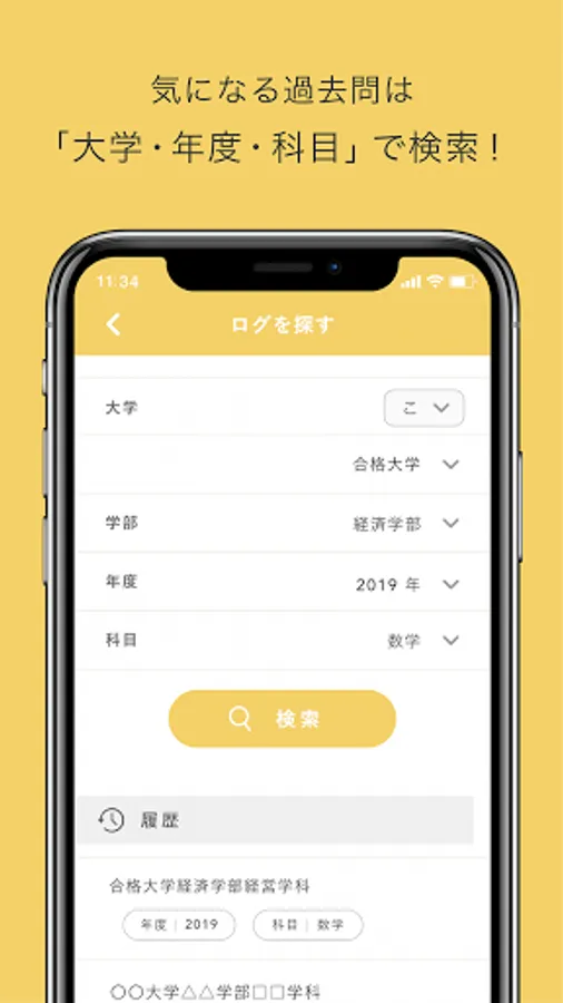 ・ You can search the records of past questions of the university solved by yourself or others by the search conditions of "university / faculty", "year", and "subject".
