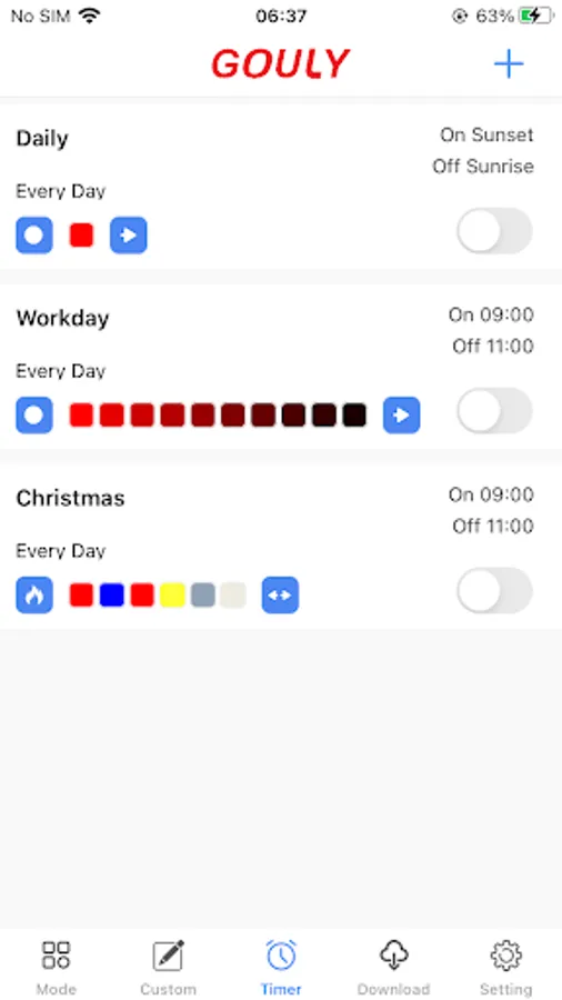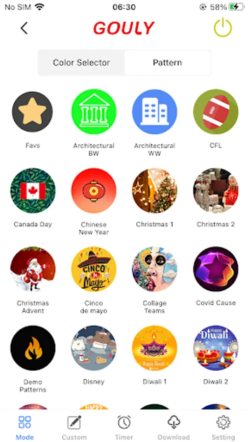 Gouly Lighting is a smart app with multiple functions,connected via Bluetooth or WIFI. It has 24 patterns and 52 holiday patterns .The app mainly includes music control, voice control, timing setting,multi group control, device sharing, reset wifi , firmware update , etc. It is available for various IC type. The Users can edit their favorite holiday lighting effects according to their needs.