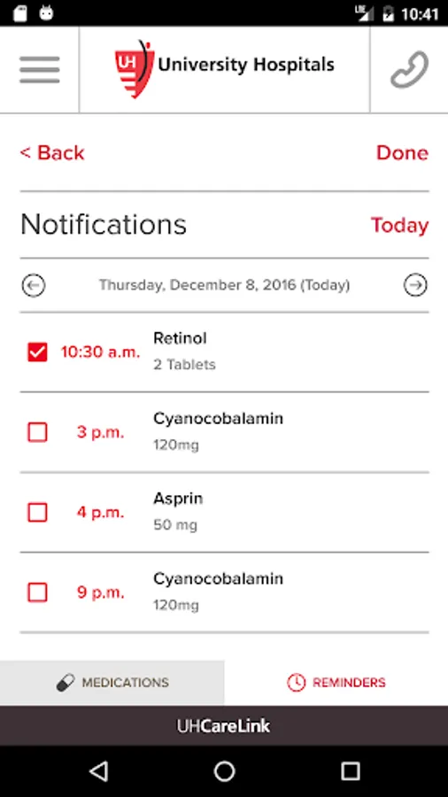 The UH CareLink app was created to help UH SIU patients take control of their own health, and in doing so, help improve their quality of life. This app allows patients to keep track of appointments, medications and other items related to their care. With UH CareLink, you can set up reminders for upcoming appointments and when to take your medications. This app can help you keep track of what you need to bring to each appointment, important information about all your medications, including dosage frequency and special instructions, and allows you to input CareNotes about special care-related issues or instructions from your physician. Additionally, this app allows you to access patient education information as well as news, events and support group information for UH SIU patients.