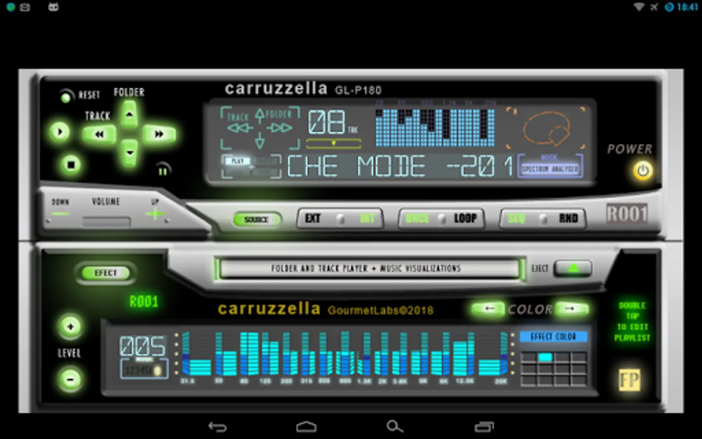 PLEASE READ BEFORE USE! This is a music player for entire folders and individual tracks. It supports all music formats supported by Android. It can control third party players and show visualizations. Entire look and feel is based on one of the famous car audio system. The name is fictitious.