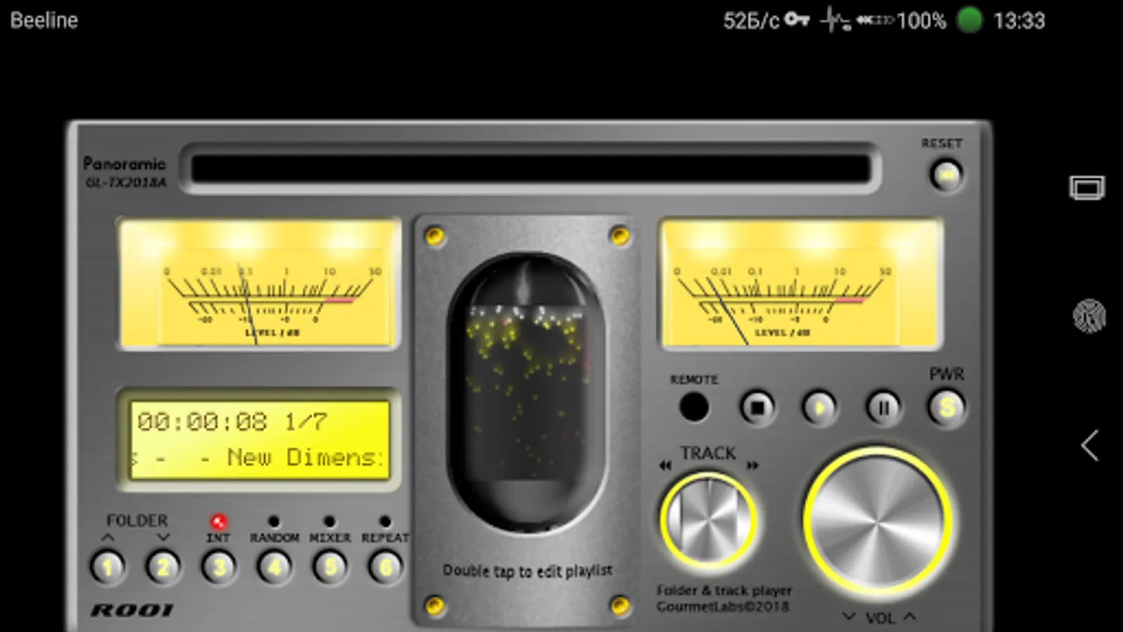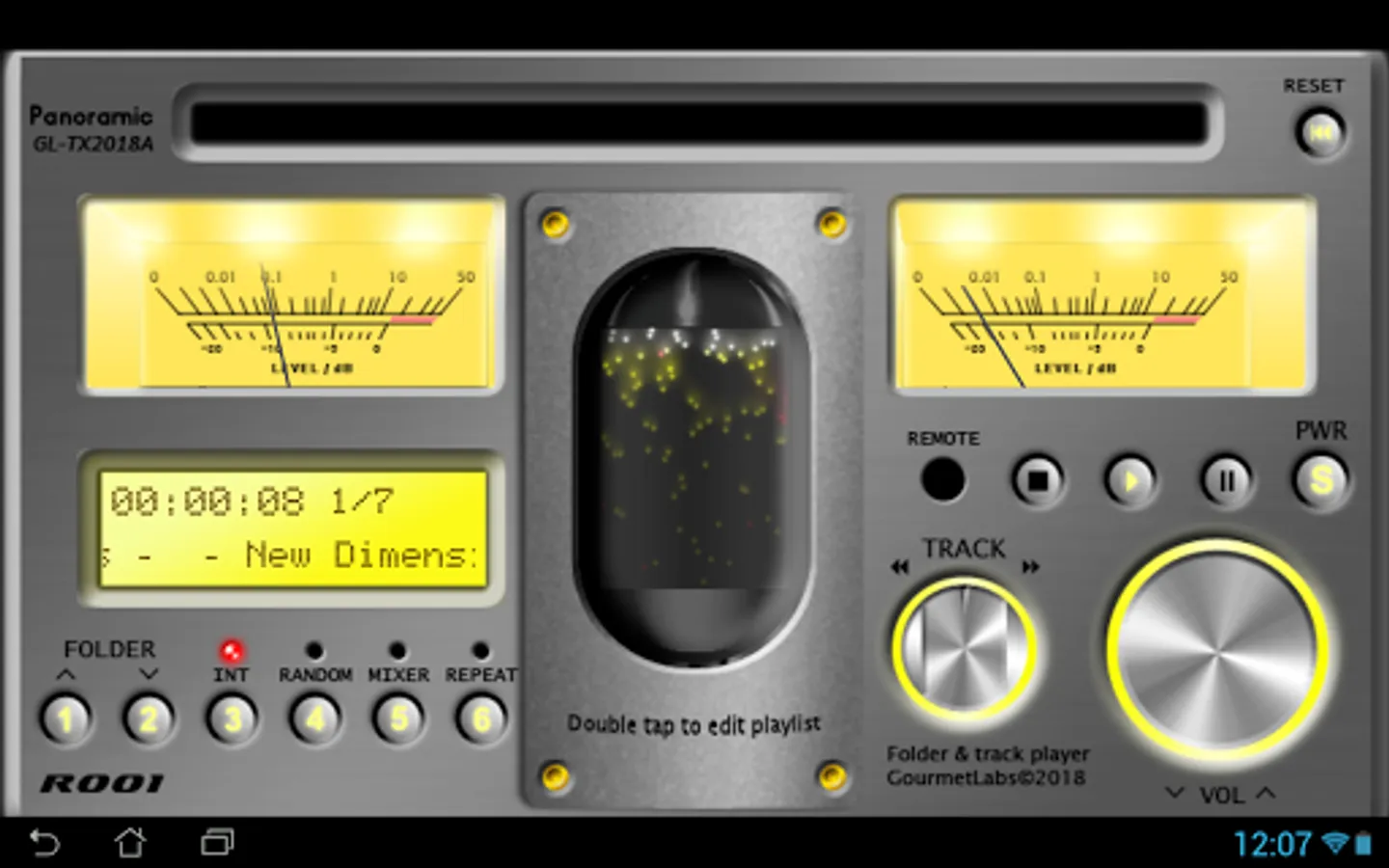 PLEASE READ THIS DESCRIPTION BEFORE USE! This is a music player for entire folders and individual tracks. It supports all music formats supported by Android. Even it can control third party players and show playing sound level. Interface simulates main controls and indications including alive VU-meters. Entire look and feel are based on one of the famous car audio system. The name is fictitious. Remove A from name end to find same app without ads.